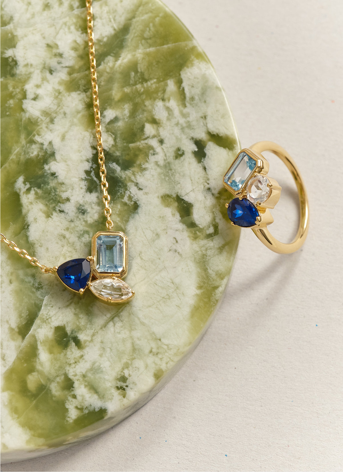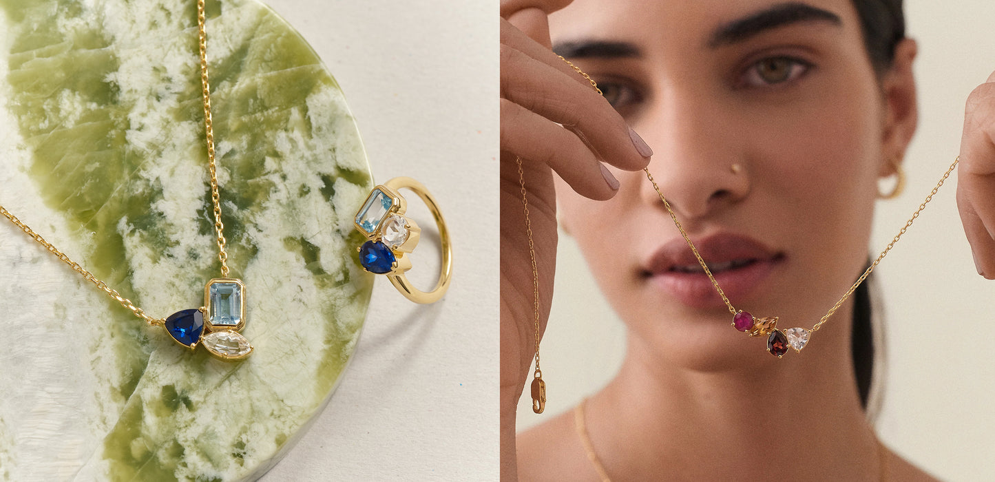 Customise your piece with coloured gemstones, or shop our black and white range that are ready to ship.