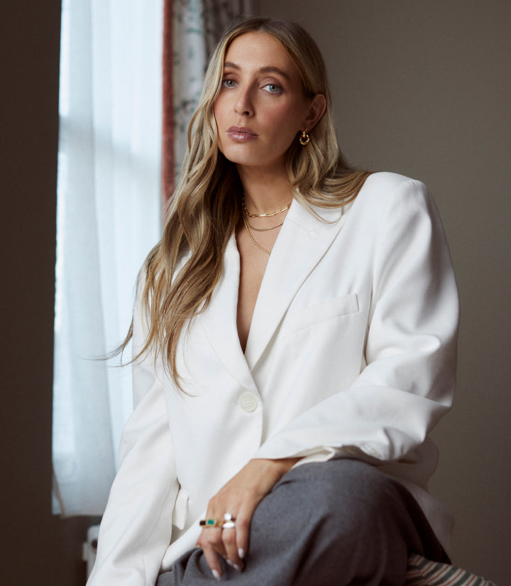Meet Charlotte Collins, a London-based editor and trendsetter. We collaborated with Charlotte on a collection inspired by her grandmother's deco ring from the 70s. This sentimental keepsake is the hero of our statement edit, set with malachite and black onyx stones.