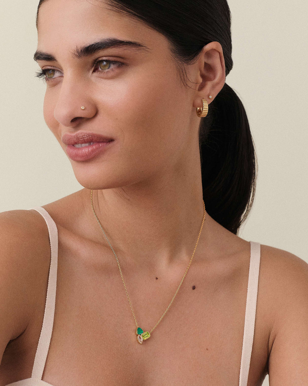 We use certified recycled 14ct solid gold. Solid gold is durable, tarnish-resistant and great for those with sensitive skin. Choose from yellow gold and white gold; the latter is 14k solid white gold finished with a layer of rhodium.