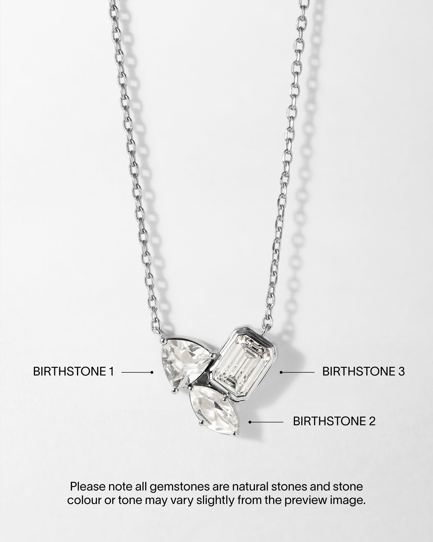 An ode to the classic Toi et Moi symbol. A celebration of love sweet love, this necklace unites your favourite birthstones to represent the three people you love most.